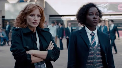 The 355 is the kind of movie that the early days of January are made for. It's a kind of workmanlike take on the Mission: Impossible formula focused on a group of talented actresses who don't get to show off much of their talent here. I suppose the appeal is to get to see these women kick a lot of ass, but that simple pleasure is robbed from us by the shaky camera work and rapid editing the action scenes use. I'm starting to miss the days when filmmakers had enough confidence in the stunt work to actually let us enjoy it.The movie was dreamed up by Jessica Chastain, who stars and serves as the lead producer. Unfortunately, she decided to trust her idea to co-writer and director, Simon Kinberg, who previously directed Chastain to one of her lesser performances in 2019's Dark Phoenix. He does her no favors here either, having her play a personality-deprived CIA officer who goes by the name of Mace. As the film opens, she's sent to Paris with fellow officer Nick Fowler (Sebastian Stan). They're to pose as a newlywed couple in order to pick up the film's plot device, a high-tech decryption device that can take down planes, hack into any system, and in the wrong hands could bring about World War III. Despite the fate of the world hanging in the balance, Mace and Nick have plenty of time for flirting and a PG-13-rated fling. Naturally, things are not what they seem, and there's a lot of other people who are also after the device. One of these people are German BND agent Marie (Diane Kruger), who interrupts the drop off of the device, leading to the first of many unmemorable action scenes through the streets of Paris and the subways. Funny thing about this movie. The plot requires the characters to visit such far off places as Morocco and Shanghai, but we either see little of these exotic locales, or they look an awful lot like a set on a studio back lot. Marie enlists the help of an old friend from MI6 to track down the device named Khadijah (Lupita Nyong'o), and when they find themselves in over their heads, they learn that they will have to team up with Marie in order to get the device and save the world. Also along for the ride is a Colombian therapist named Graciela (Penelope Cruz), who is the "fish out of water" character, having never had to deal with espionage, and has a family waiting for her back home. These four women, along with a fifth who joins them late in the film (Fan Bingbing), make up the group of heroines who learn they can only trust each other, and that the respective people and agencies they work under and with may not have their best interests in mind. The movie tries to keep its identity of its true villain a secret, but any audience member who understands the main casting rule of thrillers like this ("If a character played by a well known actor or actress is introduced, and then exits for a majority of the film, he or she is the one behind it all".) will have no problem guessing the identity of the person these women should not be trusting. Along the way, the movie just kind of goes through the motions. There's no reason why this movie needed to be made, other than people got paid to. And aside from a brief scene concerning the women just relaxing and sharing drinks together, they never really get to create personalities or play off each other.